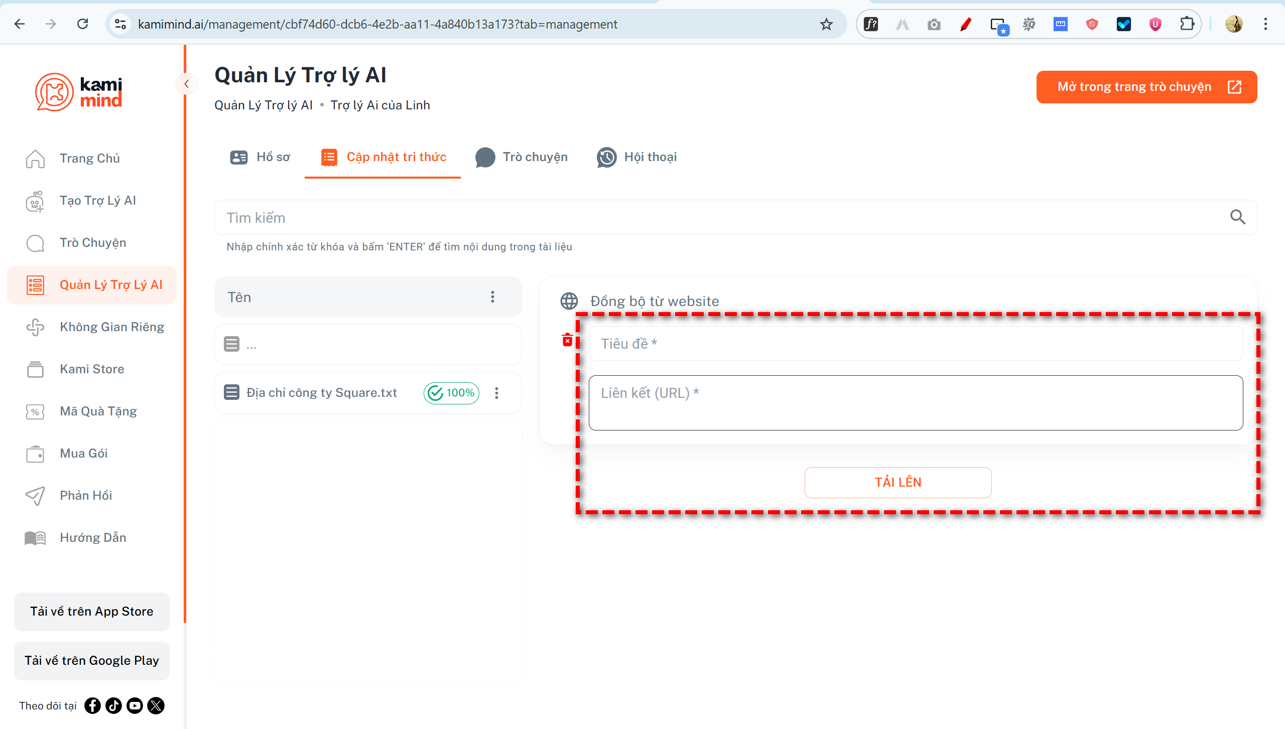 Hướng dẫn cập nhật tri thức cho Trợ Lý Ai cá nhân